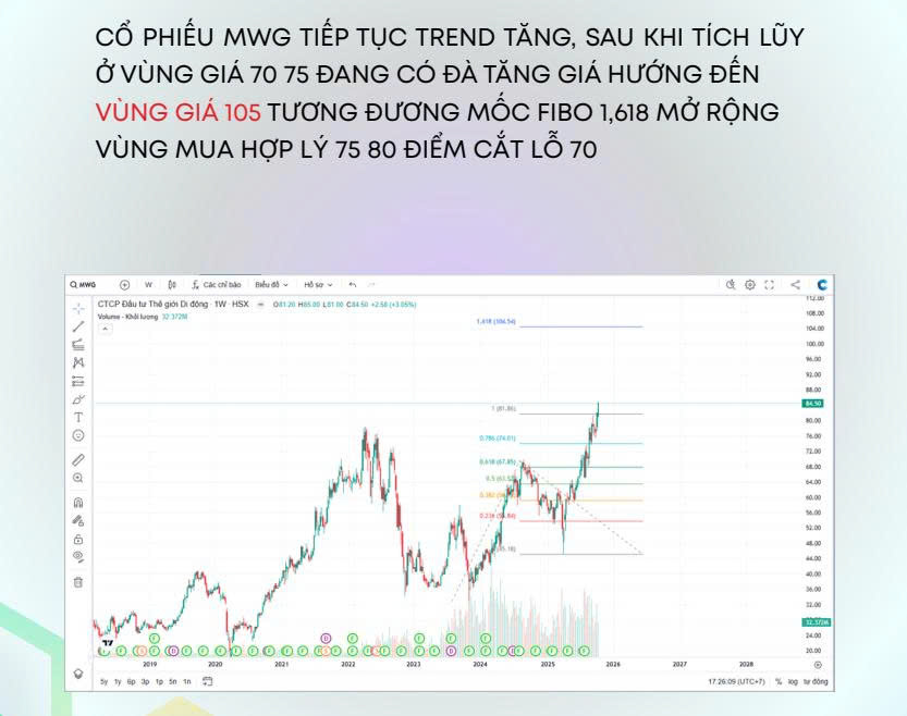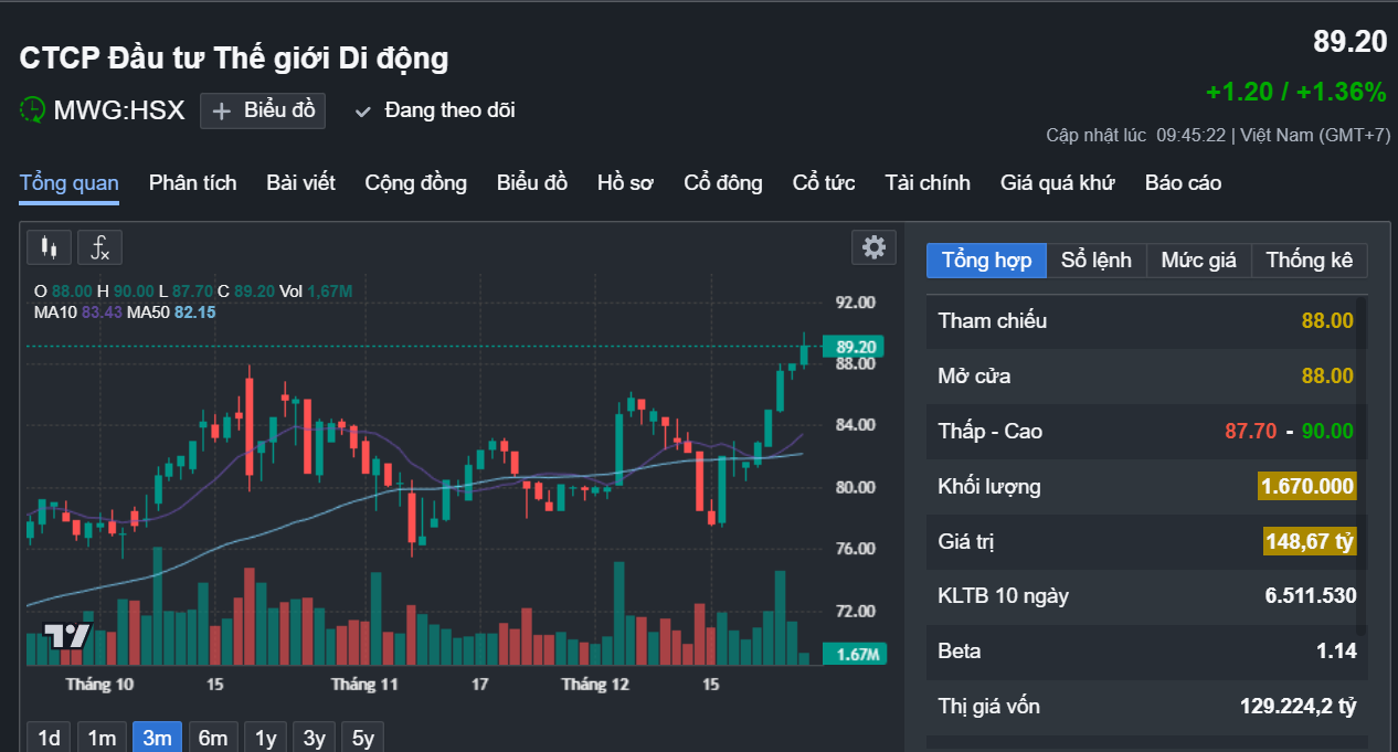 MWG là 1 trong các cổ phiếu trung hạn của Kim Quy, vùng gom từ 70.