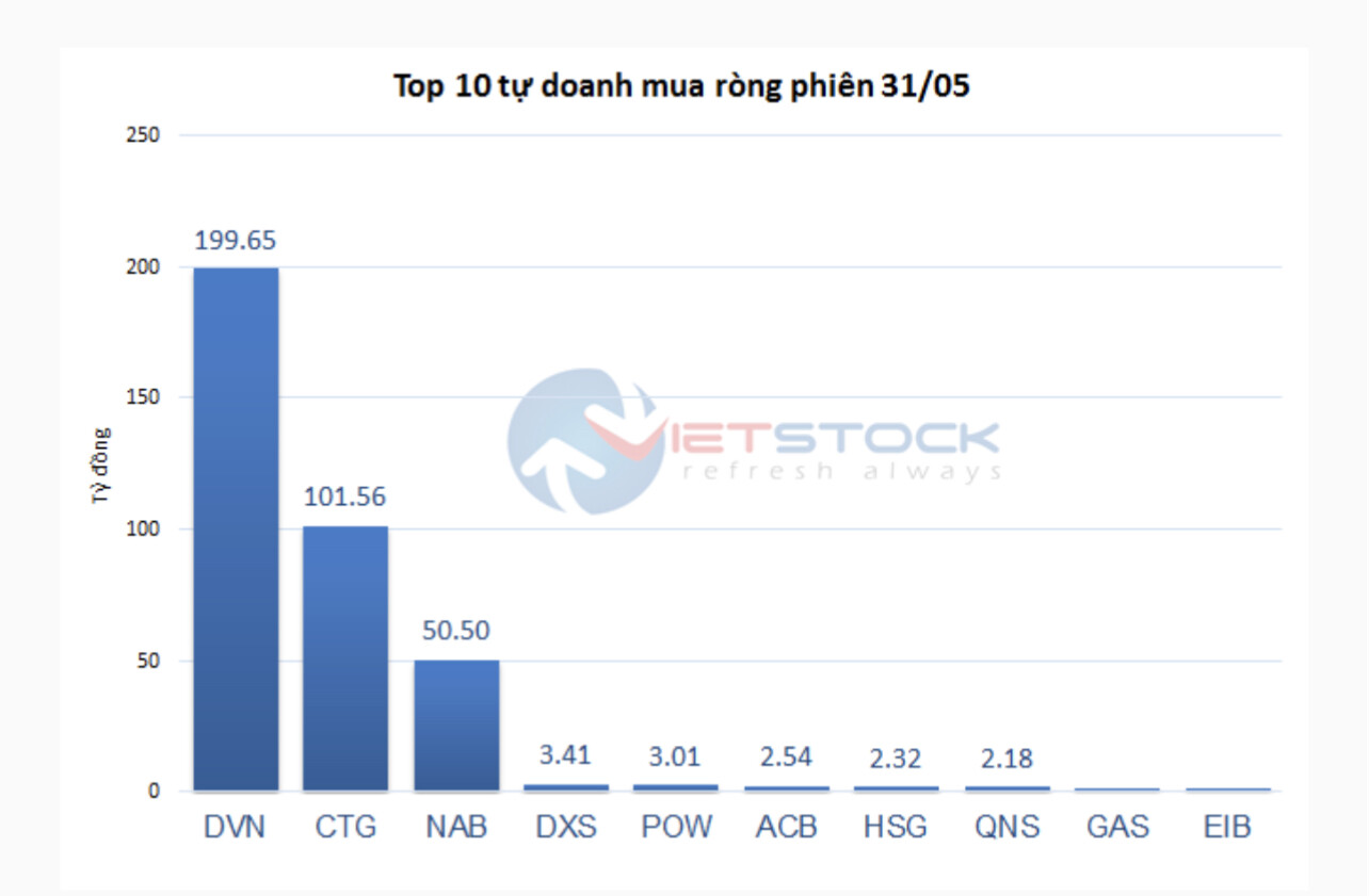Trong khi đó, khối Tự Doanh cũng mua ròng hơn 500 tỷ trong tháng 5.