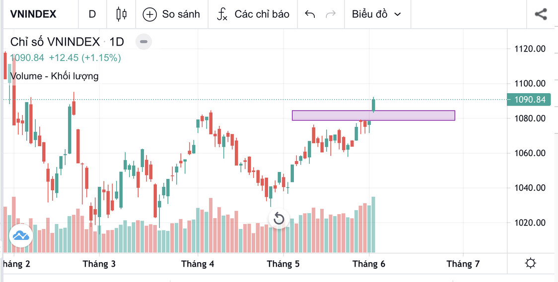 Có thể trong tuần tới sẽ có vài phiên lui về lấp GAP nếu ko vượt được 1.100