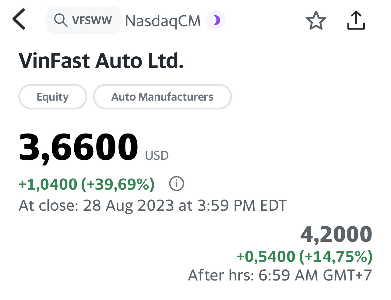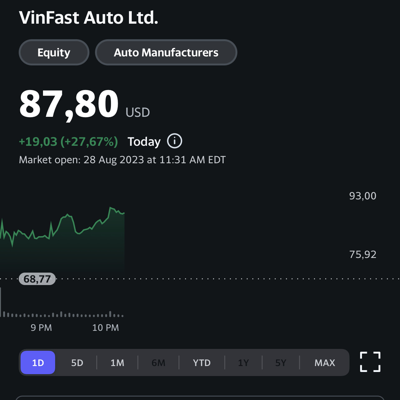 vốn hóa của VinFast đạt hơn 190 tỷ USD. Mức giá cao nhất trong ngày lên đến 93 USD, tương ứng vốn hóa đạt 215 tỷ USD - xấp xỉ vốn hóa của Toyota.