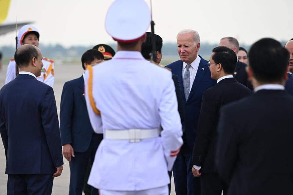 16h chiều nay, chiếc Không lực Một chở Tổng thống Mỹ Joe Biden hạ cánh xuống sân bay Nội Bài, bắt đầu chuyến thăm chính thức Việt Nam trong hai ngày 10-11/9.