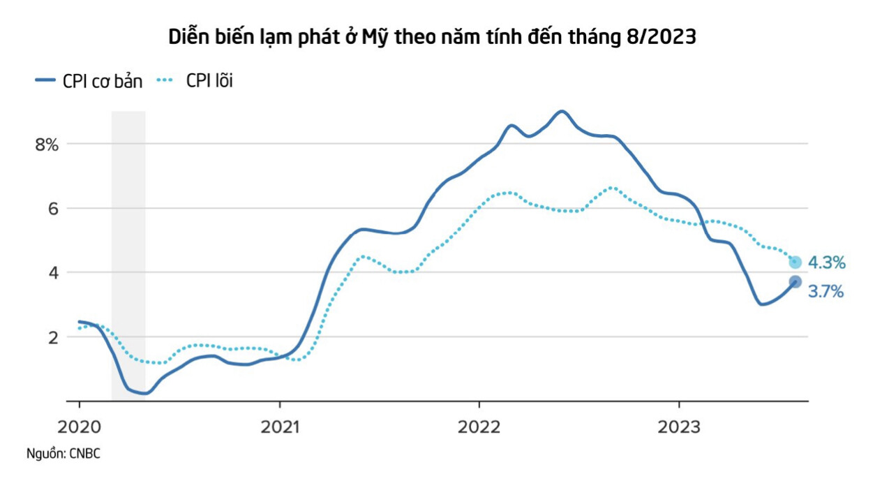 CPI tháng 8 của Mỹ tăng tuy nhiên CPI lõi (không bao gồm giá thực phẩm và năng lượng) vẫn đang nằm trong trend giảm.