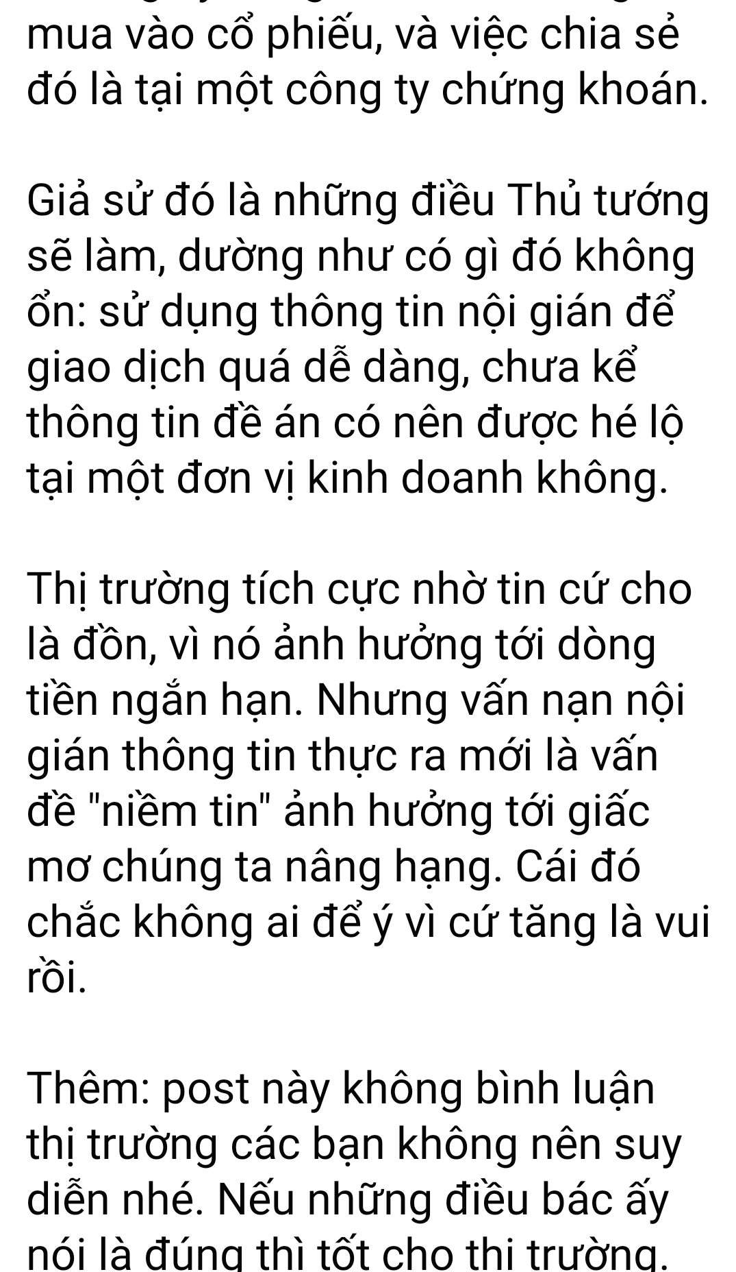 Thấy rao rao tin này, còn có ý kiến về giao dịch vậy coi là nội gián…