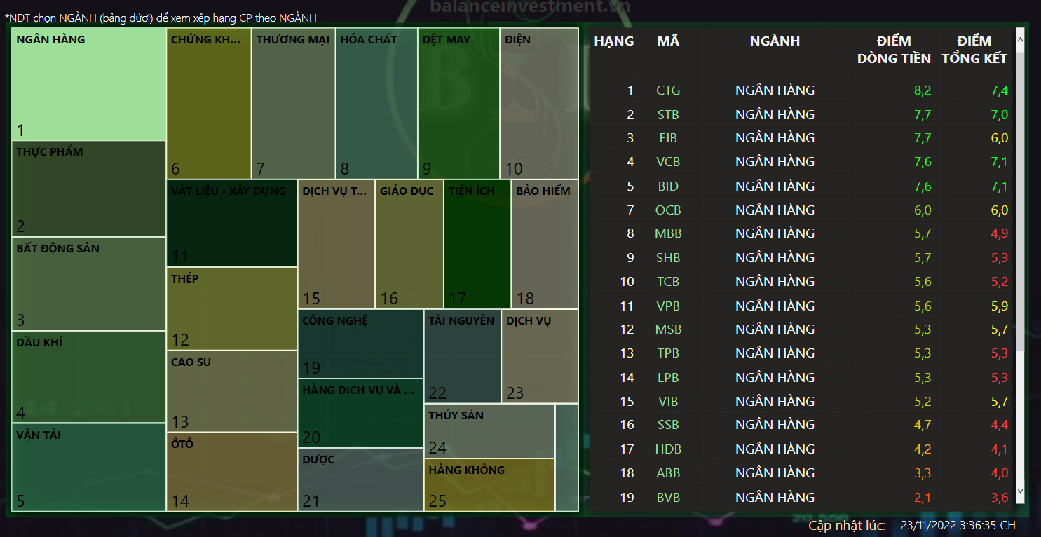 Hiện ngành bank là ngành có nhiều mã đang có điểm số khá tốt, các bác có thể quan tâm nhóm ngành này nhé.