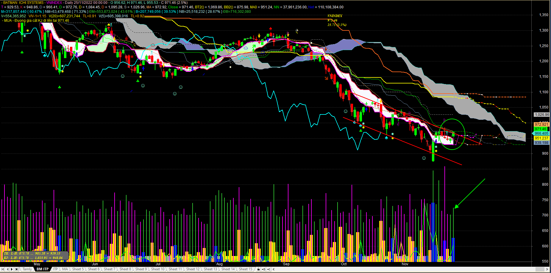 Phải luôn nhớ vẫn chỉ là một nhịp hồi kỹ thuật. Chưa uptrend đâu nhé. Cho nên phải hết sức cẩn thận nếu buôn ngắn. Còn buôn dài âm vốn lớn nếu canh canh cưa chân bàn được thì cưa hoặc cơ cấu sang mã khác. Còn không thì kệ mợ nó…vậy. Còn nếu bán thì là coi như xong.