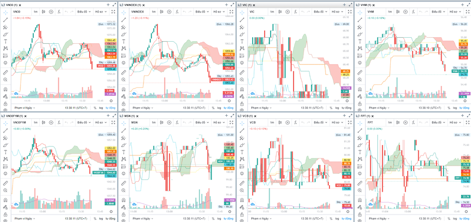 e thấy rũ bình thường thôi mà, nếu chia khung nhỏ hơn thì vừa rồi chỉ là shake-out để rũ bớt chứ chưa làm thay đổi xu hướng. Đầy cổ vẫn khỏe chán. Ai giỏi lướt lát thì hạ nhưng nguy cơ mất hàng sẽ có, ai đánh theo trend vẫn giữ tốt, đoạn này có khi nó đánh vượt luôn cả kháng cự 1070