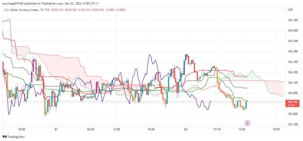 Đây là DXY khung 15 phút, bác có thấy nó chạm sắc xanh là dội lại không?