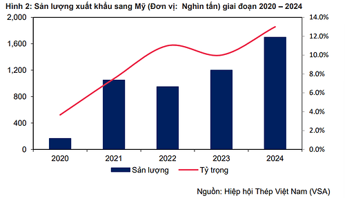 Tính đến cuối năm 2024, Mỹ là đối tác xuất khẩu thép lớn thứ 3 của Việt Nam (13% tổng sản lượng). sản phẩm chính: Tôn mạ, HRC, CRC.