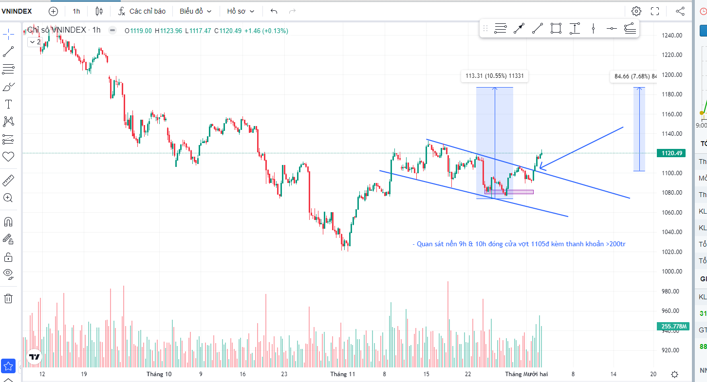 Như chia sẻ ở bài phân tích trước đó, phiên nay đã xác nhận mẫu hình tăng giá hình lá cờ với upsize kỳ vọng lên vùng 1085đ tức sẽ tăng khoảng 7%, nhiều cổ phiếu sẽ có mức tăng 15-20%.