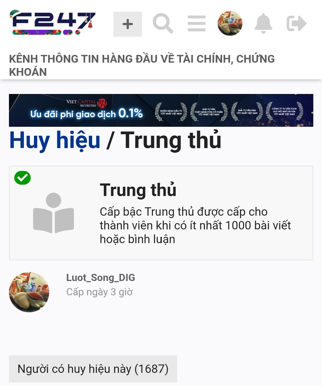 Cám ơn mod @SuperModerator cho cái huy hiệu, tôi gửi cái hình ở đây, tối sẽ vào chia sẻ cho anh em biết tại sao tôi nói thị trường đã xác nhận ấp cheng!!!