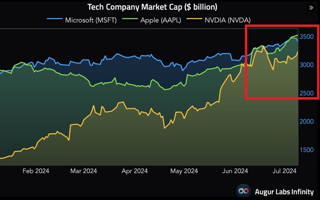 Microsoft, NVIDIA và Apple cộng lại hiện có giá trị cao hơn toàn bộ thị trường chứng khoán Trung Quốc, thị trường lớn thứ 2 thế giới.