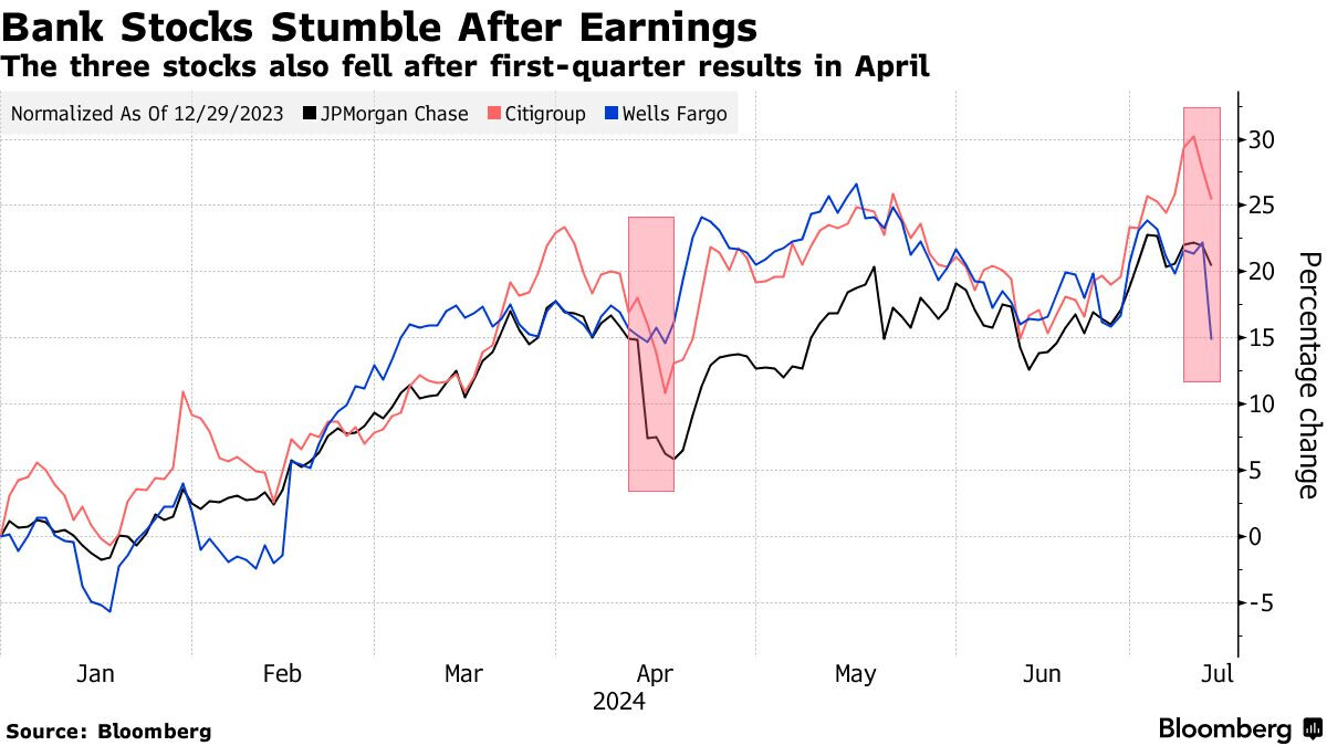 Well Fargo giảm 6%, ghi nhận mức giảm lớn nhất trong lịch sử vào ngày công bố báo cáo thu nhập sau khi thu nhập lãi ròng gây thất vọng.