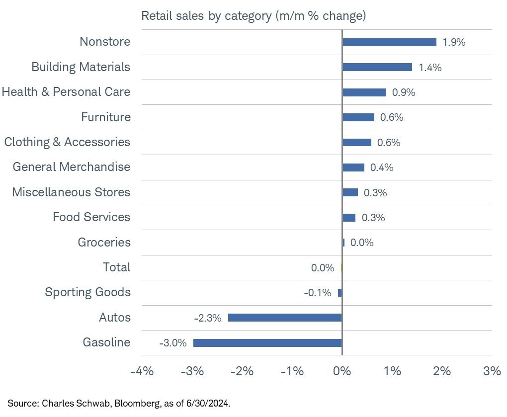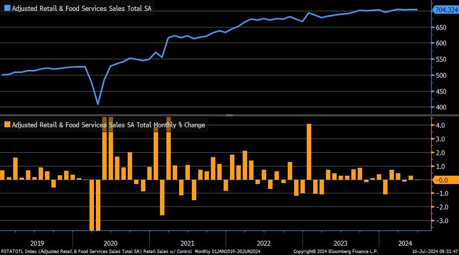 Doanh số bán lẻ của Mỹ không thay đổi trong tháng 6 là 0%.