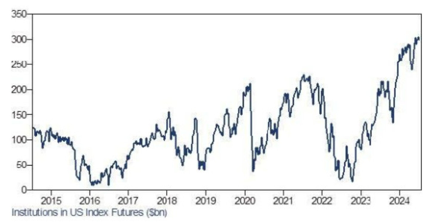 Theo Goldman Sachs, các nhà quản lý tài sản hiện giữ vị thế mua (Long) Hợp đồng tương lai chỉ số U.S Equity trị giá 300 tỷ USD, đây là vị thế mua lớn nhất trong lịch sử.