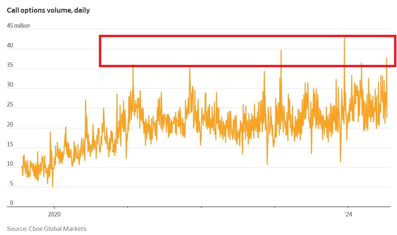Khối lượng quyền chọn mua trên thị trường chứng khoán Mỹ đã đạt hơn 37 triệu vào thứ Năm, lớn thứ 3 từ trước đến nay.