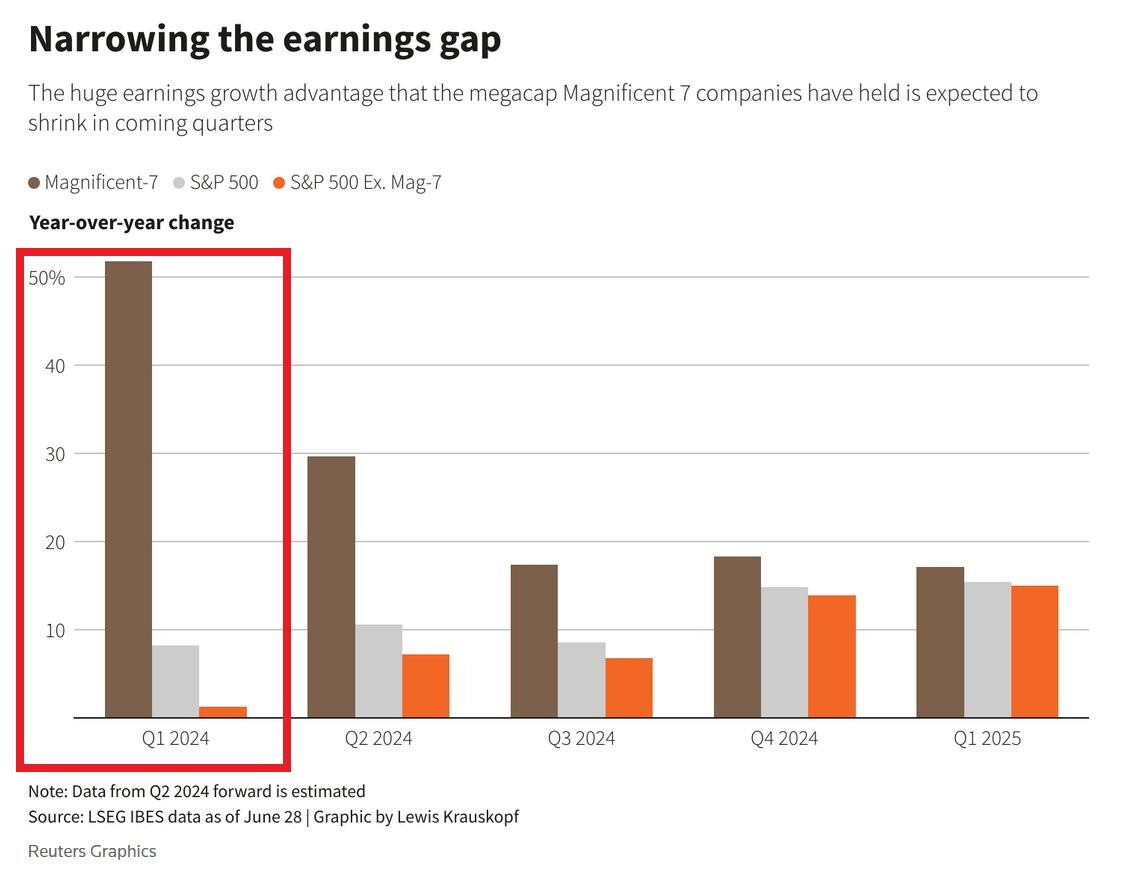 Đồng thời, S&P 500 ngoại trừ Mag 7 KHÔNG CÓ TĂNG TRƯỞNG LỢI NHUẬN.