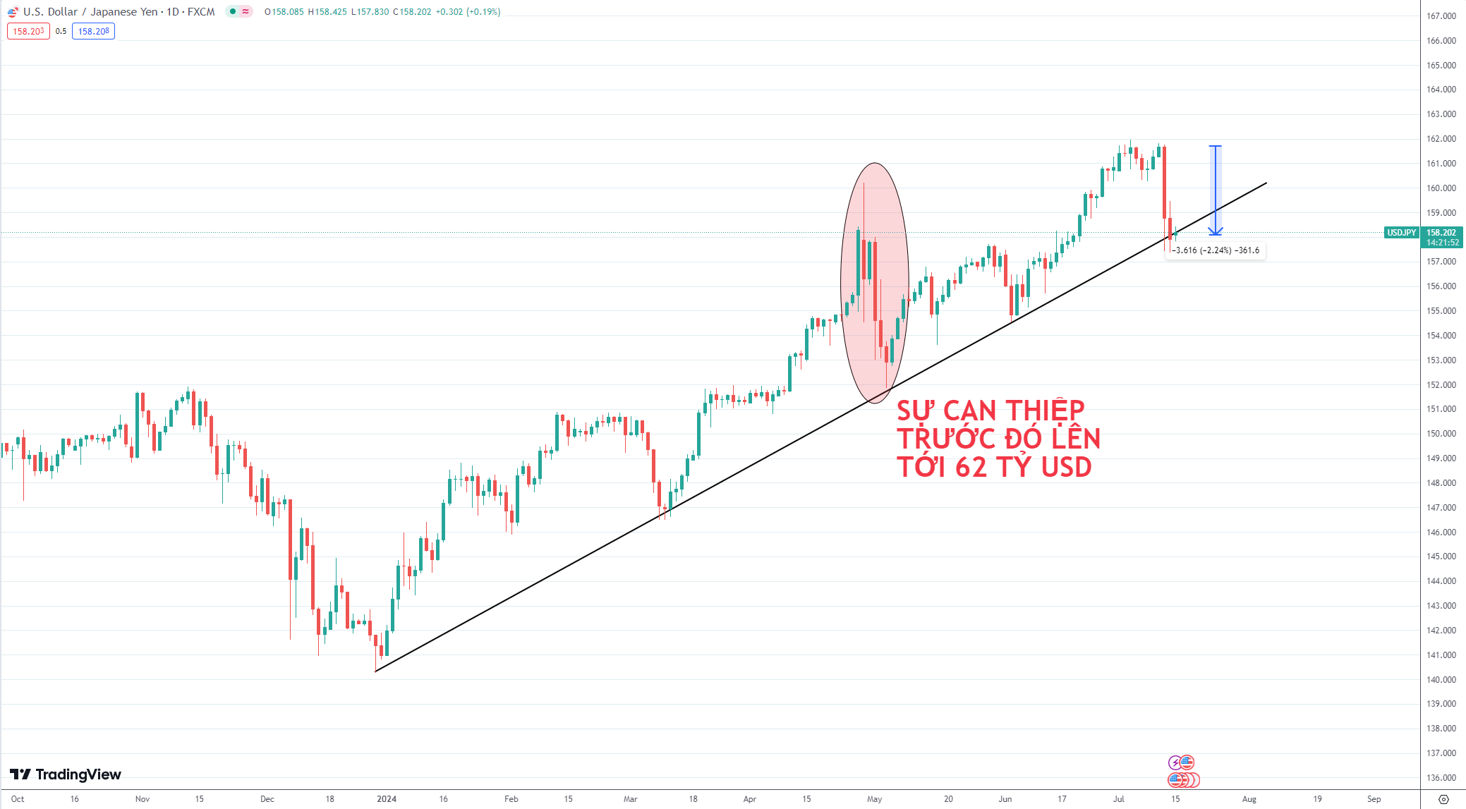 Xin nhắc lại, các biện pháp can thiệp trước đó của BoJ lên tới 62 tỷ USD trong tháng 4 nhưng USD vẫn phục hồi sau một tháng.