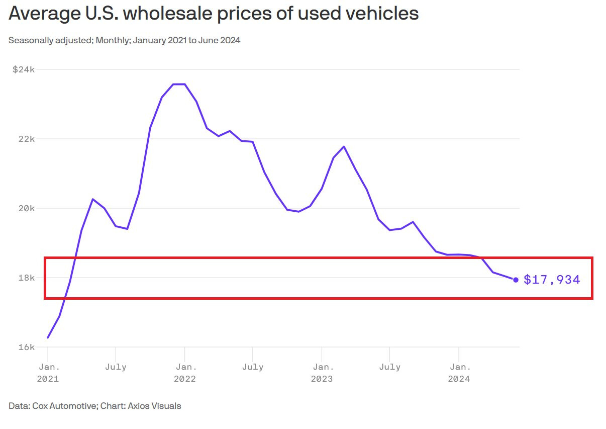 2) Giá ô tô đã qua sử dụng ở Mỹ đang giảm mạnh như thể đang có suy thoái.