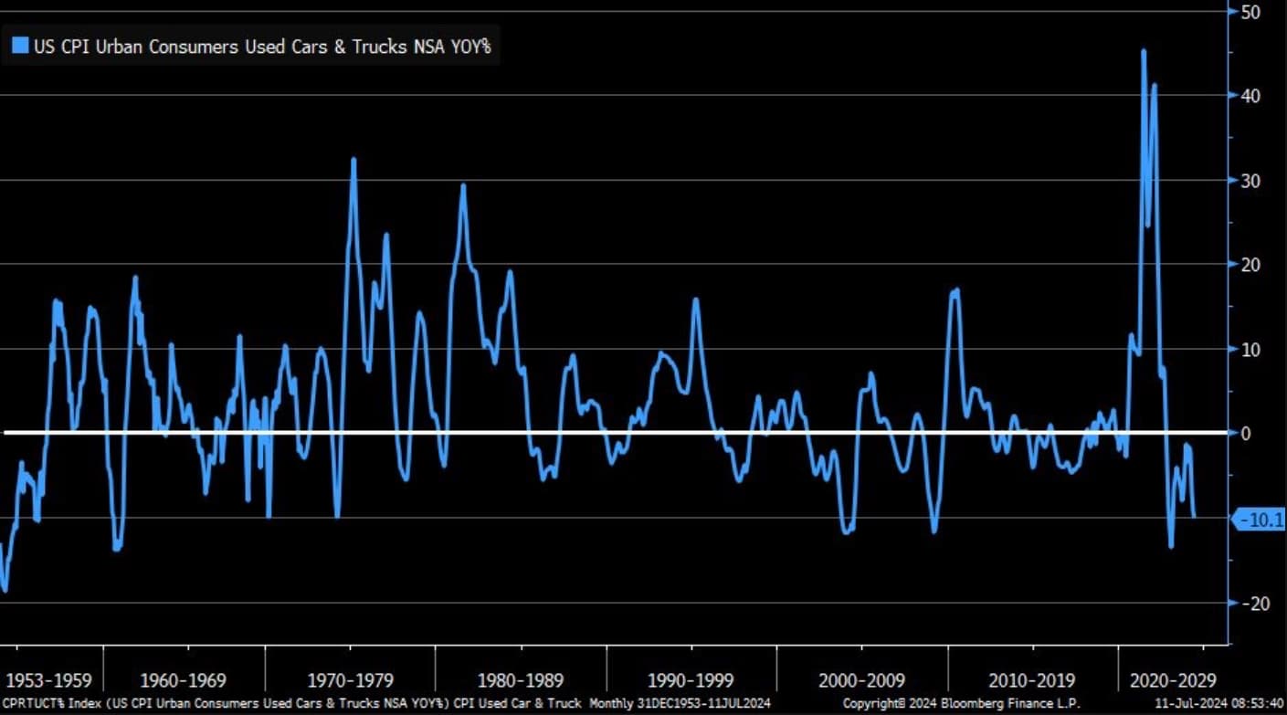 Giá ô tô và xe tải đã qua sử dụng giảm mạnh 10.1% so với cùng kỳ trong tháng 6. Điều này phù hợp với mức giảm +10% xảy ra trong cuộc Đại khủng hoảng tài chính 2007-2009.