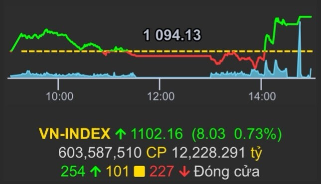 Nhóm chứng khoán có SSI, VCI, SHS, VIX, FTS đều tăng >2%, giúp đà tăng được duy trì và VN-Index đóng cửa tuần giữ trên mốc 1.100, tăng >8 điểm.