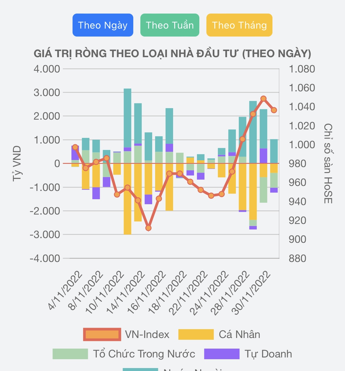 Uhm trong tháng 11 dòng tiền động lực chủ yếu đến từ nhà đầu tư ngoại: