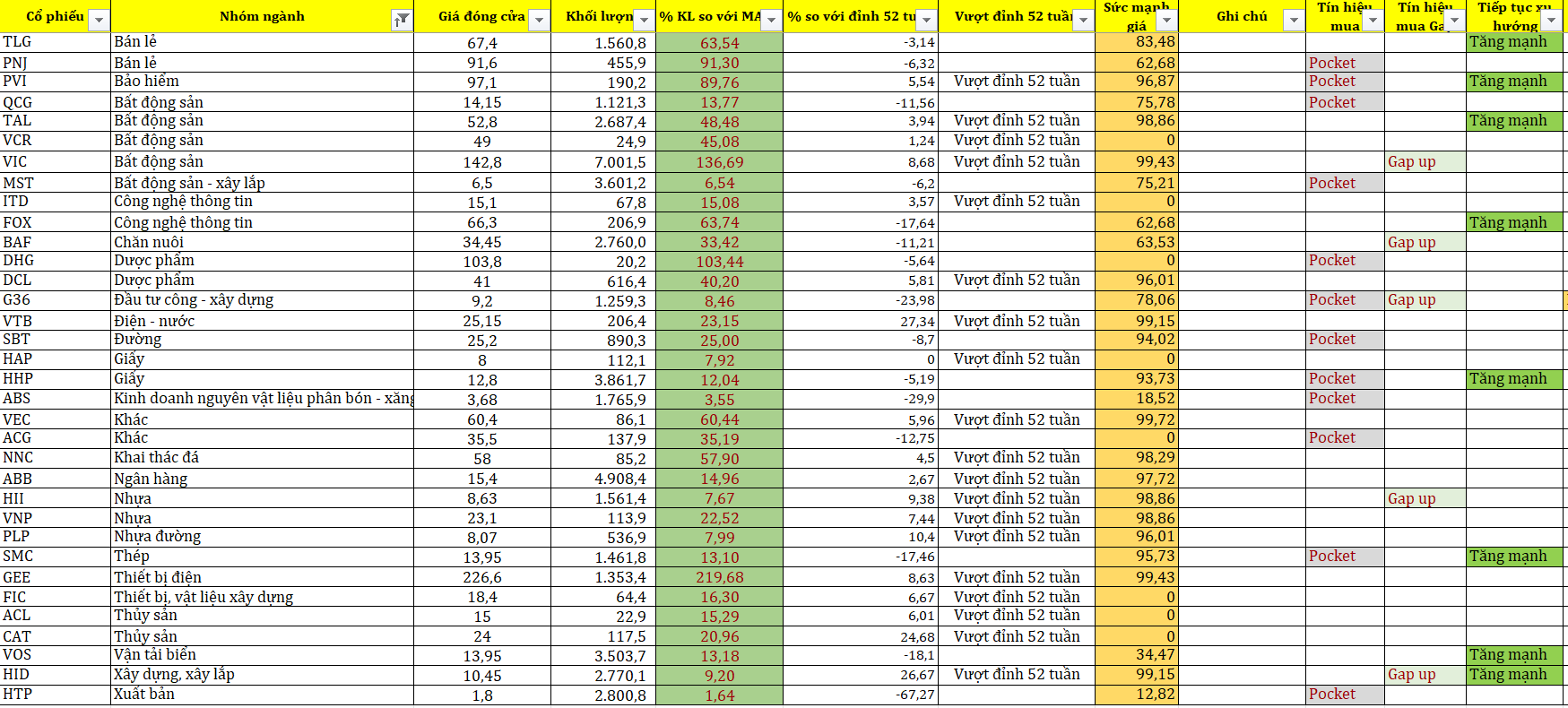 Danh sách những cổ phiếu có tín hiệu mua bùng nổ hôm 5.12.2025 cho thấy dòng tiền vẫn tìm kiếm cơ hội ở các cổ phiếu riêng lẻ hơn là tập trung vào một nhóm dòng. Vì bản chất các nhóm cổ phiếu thị trường đang tái tích lũy và chưa thấy điểm nổ luân phiên thì khó để thị trường phá thành công ngưỡng kháng cự 1794 điểm trong thời gian tới thay vào đó là tích lũy tiếp để hấp thu nguồn cung cho đến kiệt về khối lượng.