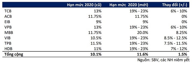 Đơn cử, Vietcombank năm 2020 được cấp tín dụng 10%, tuy nhiên đến cuối năm NHNN nâng “room” lên 14%. Một số ngân hàng ngân hàng khác cũng được nâng chỉ tiêu như MB, Techcombank, TPBank…
