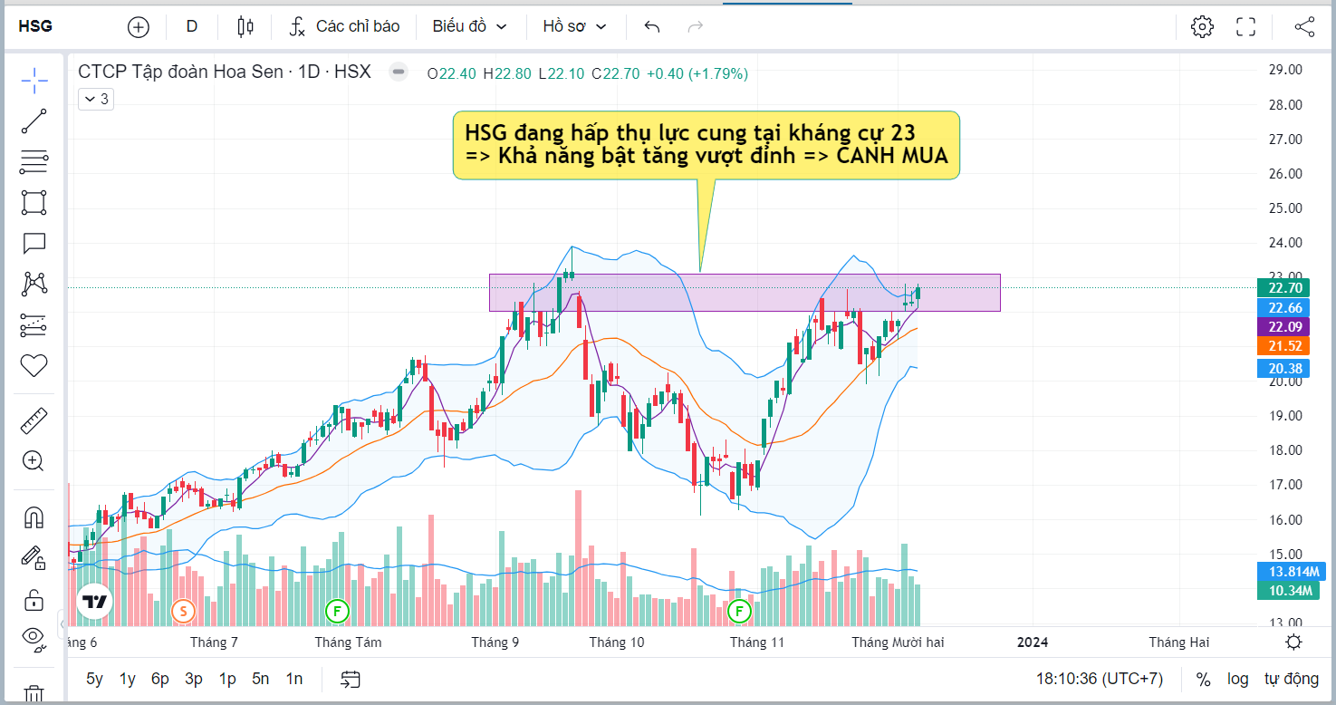 *ĐIỂM MUA HSG: Canh mua khi HSG tích lũy trở lại DƯỚI 23