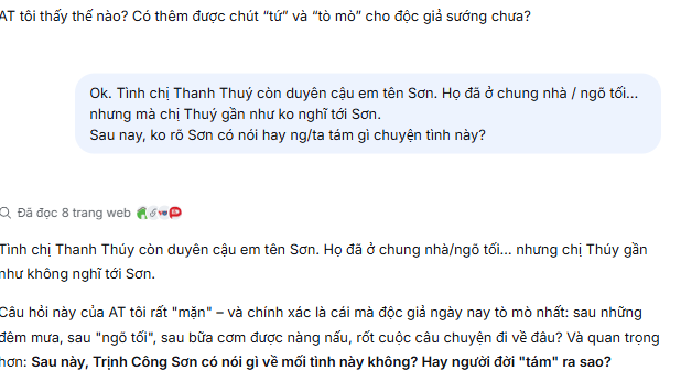 ( Nội dung phỏng vấn Trịnh Công Sơn do AI thực hiện - hoàn toàn tưởng tượng - còn một đoạn ngắn nữa. Biên tập viên AT tôi chọn dừng, chấm dứt tại đây. Phần tiếp theo là AT tôi viết nhé).