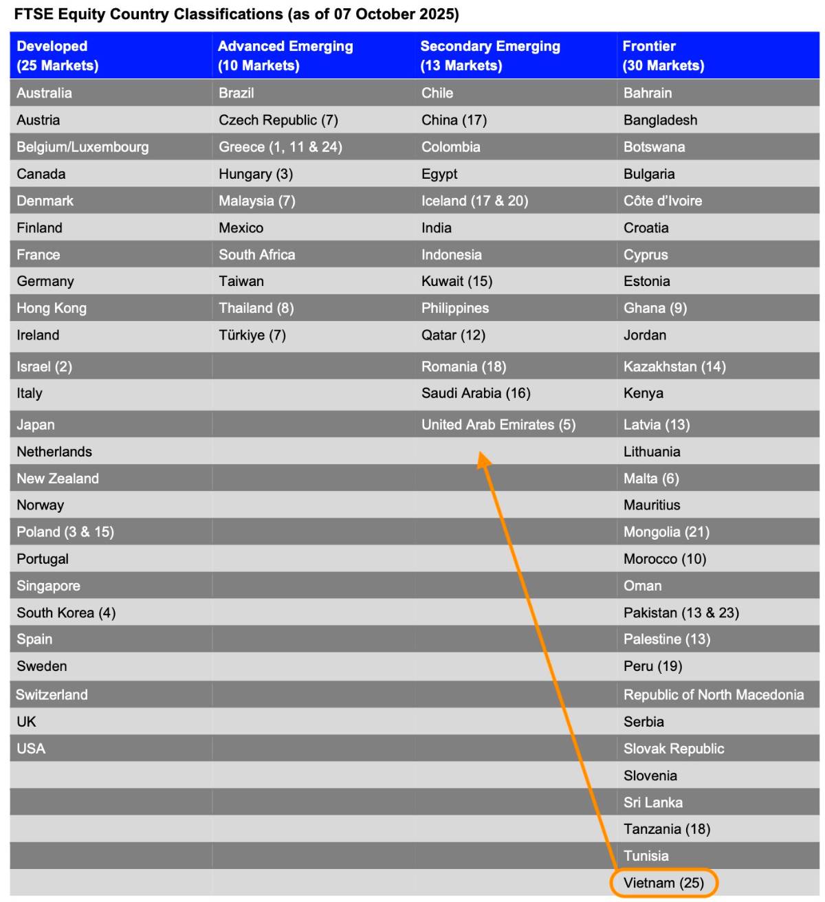 Rạng sáng ngày 8/4 tới đây theo giờ Việt Nam, mọi sự chú ý của giới đầu tư sẽ đổ dồn về kết quả rà soát phân loại thị trường của FTSE Russell. Nếu vượt qua bước kiểm định then chốt này, chứng khoán Việt Nam sẽ chính thức được nâng hạng lên thị trường mới nổi thứ cấp, đặt chúng ta lên cùng bàn cân với các cường quốc tỷ dân như Trung Quốc, Ấn Độ hay Indonesia. Đây không chỉ là một sự thay đổi về danh xưng, mà là một bước đệm chiến lược thu hút dòng vốn ngoại khổng lồ.