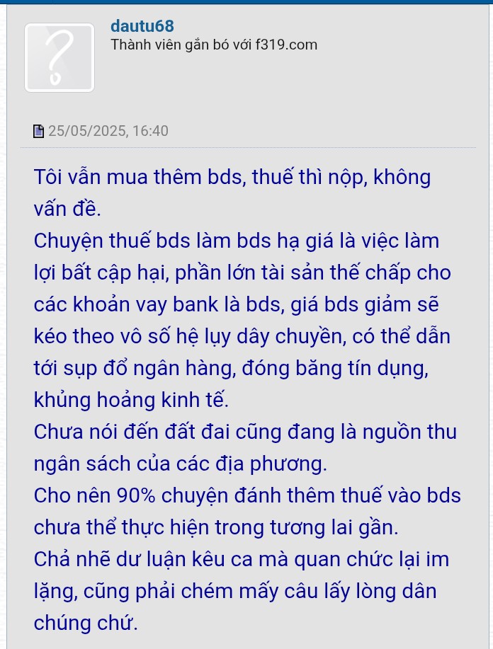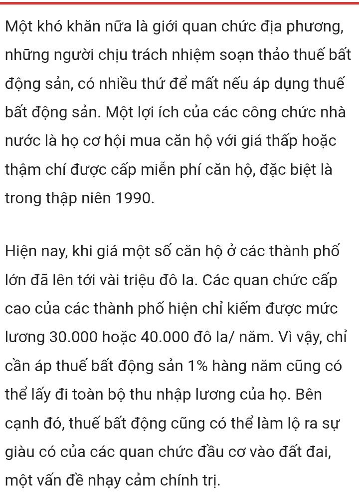 Thuế bđs thì bank rơi đầu tiên, chưa kể câu chuyện nâng hạng Ttck chỉ còn trong lý thuyết, giá thuê nhà sẽ càng cao, dân nghèo càng khó tiếp cận nhà (cái này bất kể có thuế hay ko vì trên thế giới đều vậy cả, nhưng khi có thuế thì lại càng khó mua vì người mua phải chịu mọi chi phí + lãi) tiền dư trong dân sẽ chảy ra nước ngoài khiến đất nước chỉ còn lại cái bóng, càng giàu có càng bất hạnh…