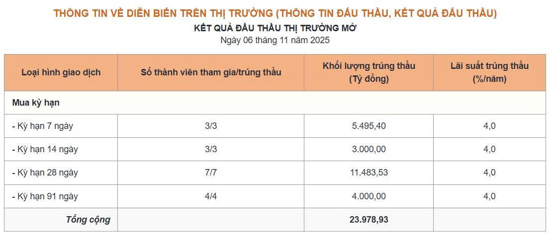 OMO 28 ngày: 11.483,53 tỷ đồng (Lãi suất 4%)