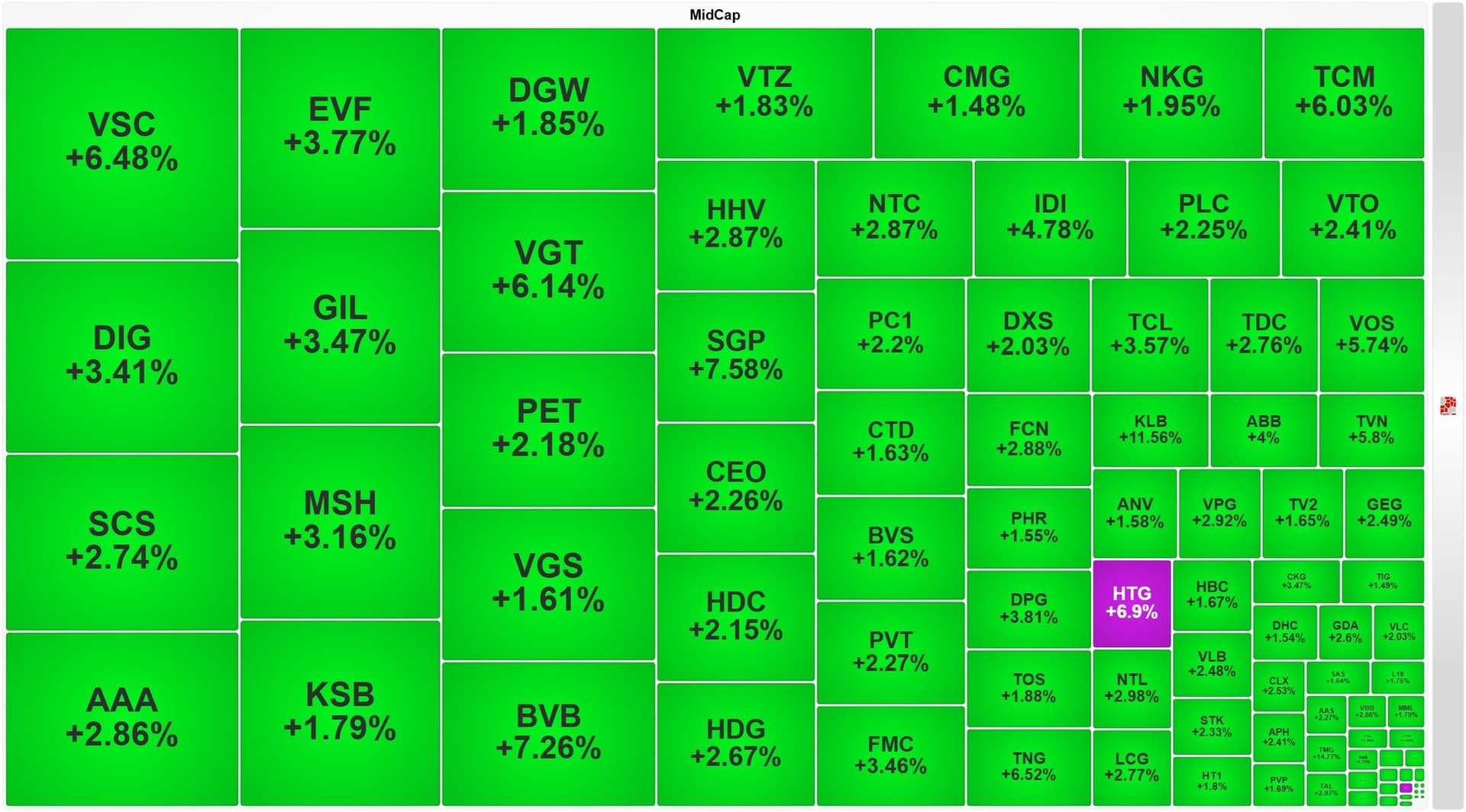 Hôm nay thị trường chỉnh là dấu hiệu của dịch chuyển của dòng tiền từ nhóm đã tăng như trụ, bank để lan tỏa sang các nhóm khác. Anh em đặc biệt lưu ý nhóm MIDCAP, mình đã nhắc khá nhiều lần trong thời gian gần đây rồi