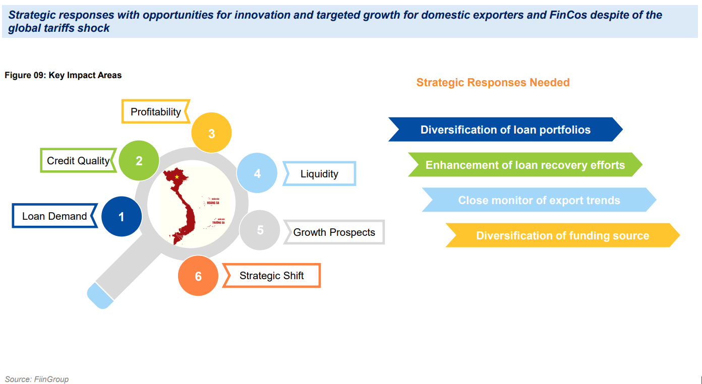 Mặc dù vậy, Các phản ứng chiến lược trong nước được kỳ vọng mở ra cơ hội đổi mới và tăng trưởng có trọng điểm cho các doanh nghiệp xuất khẩu trong nước và các công ty tài chính tiêu dùng, bất chấp cú sốc thuế quan toàn cầu.