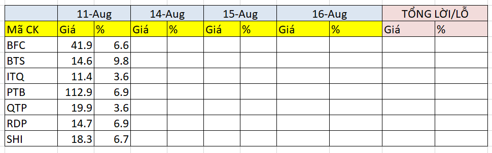 Danh sách đó là đang kiểm tra xem nếu đu giá tím mấy cổ phiếu bom thổi thì kết quả như thế nào, chưa cập nhật xong bác ạ. Hiện tại, sau 1 ngày hơn 80% lỗ (mua 11 cổ, lỗ 8 cổ), sau 2 ngày là hơn 85% lỗ (mua 11 cổ, lỗ 9 cổ) , còn sau 3 ngày thì chưa tới (thứ 2 tuần sau).