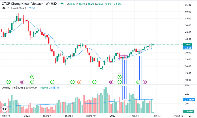 Trong phần được đánh dấu màu xanh đầu tiên của biểu đồ tuần , hành động giá của VCI vẫn rất chặt chẽ trong hơn một tháng trong khi khối lượng có dấu hiệu cạn kiệt. Đây là những gì bạn muốn thấy khi hành động trở nên chặt chẽ. Nếu khối lượng này lớn, chúng tôi sẽ không thể giả định tích lũy, như đã đề cập ở trên.