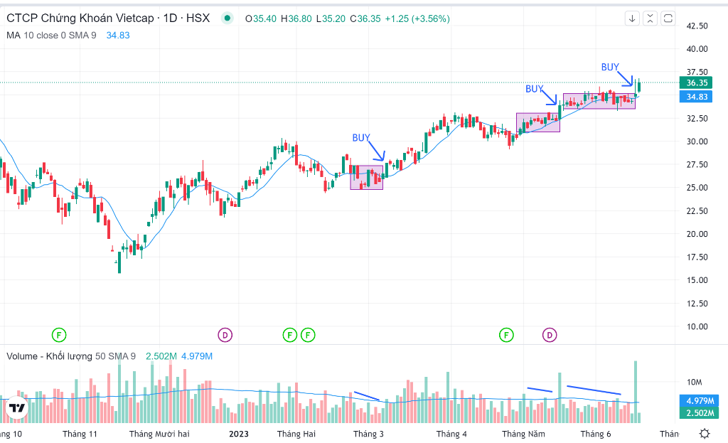 Thắt chặt ở hành động giá cho thấy sự đồng thuận của phe mua và phe bán. Khi có sự thống nhất sau khi đàm phán giữa phe mua và phe bán thì cổ phiếu sẽ có xu hướng chuyển động theo 1 chiều hướng nhất định, xu hướng theo sau chính là cái mà tôi ưa thích.