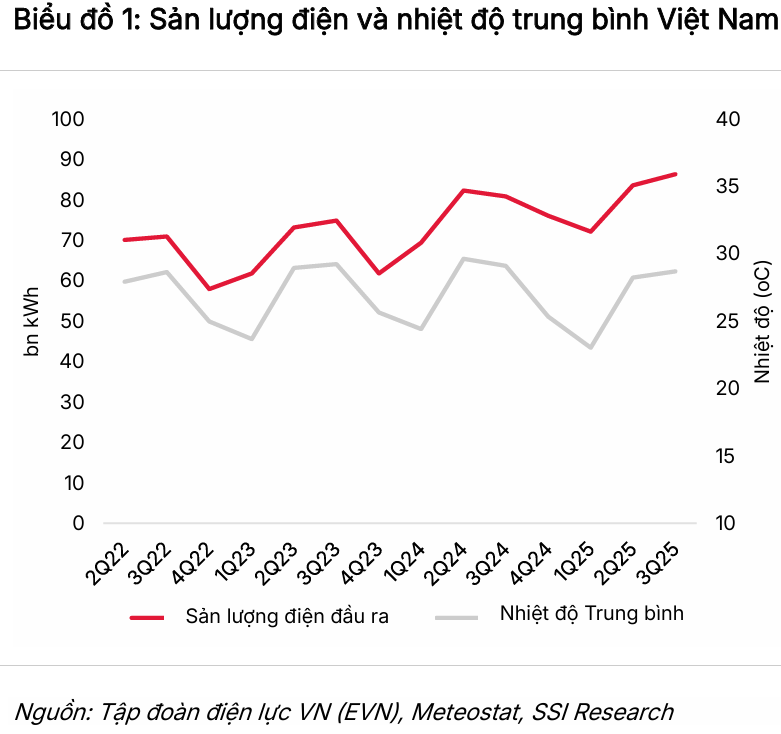 Chúng tôi kỳ vọng đà tăng sản lượng điện sẽ tiếp diễn trong quý 4/2025, nhờ vào tăng trưởng tốt của kinh tế.