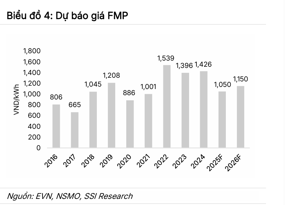 Chúng tôi dự báo sản lượng điện sẽ tăng từ 7 - 8% svck trong năm 2026, sau mức tăng ước tính 7 - 9% trong nửa cuối năm 2025. Tuy nhiên, giá thị trường điện toàn phần năm 2026 có thể sẽ chỉ duy trì ở mức thấp so với giai đoạn 2022 - 2024, do điều kiện thủy văn thuận lợi giúp cho việc huy động thủy điện vẫn tiếp tục tốt (chi phí sản xuất thủy điện thấp hơn so với điện than và khí). Khả năng chuyển từ thời tiết trung tính sang hiện tượng La Niña cũng cho thấy tiềm năng tăng trưởng đối với sản lượng thủy điện trong năm 2026, tiếp nối đà phục hồi mạnh trong năm 2025.