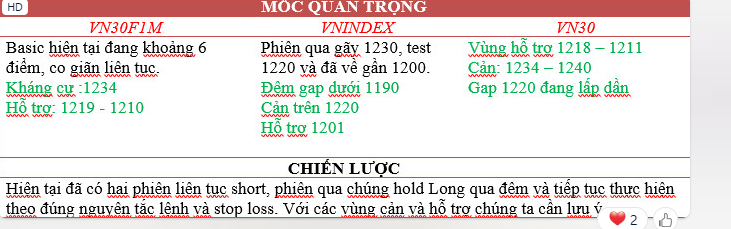 @All TIÊU ĐIỂM PHÁI SINH NGÀY 20/09 TỔNG QUAN Khối ngoại giữ Long theo lũy kế đến phiên 16/9 là 10.283 HĐ, phiên qua out bớt và hiện tại vẫn giữ 9719 HĐ. OI phiên qua là 43.900 tăng thêm so với trước đây là 2.000 HĐ Tự doanh qua short thêm 803 HĐ và hiện đang còn giữ tổng 4771 HĐ short và vị thế của họ đã có lời khoảng 40 điểm. DJ đêm qua đã hồi lại gần 200 điểm và TT thế giới cũng đã khởi sắc hơn, kỳ vọng Index và phái sinh sẽ có tín hiệu tốt trở lại.