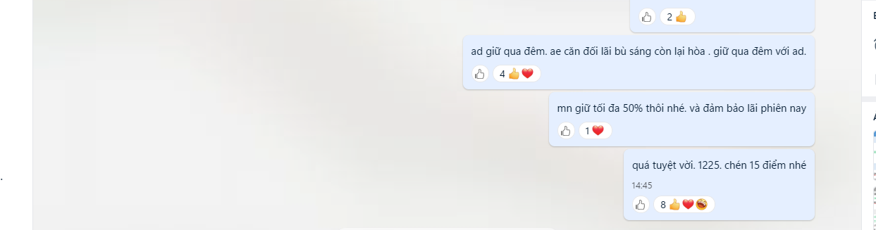@All lượng OI qua đêm sụt giảm manh từ 51 k về 44k. khối ngoại vẫn duy trì lượng LONG quanh 10k. tự doanh duy trì lượng Short quanh 4k. Phiên thứ 6 side way biên khá lớn, giũ mạnh cả 2 chiều LONG/SHORT. các vùng hỗ trợ và kháng cự đều bị đánh break rồi đảo ngược xu hướng. hiện vùng hỗ trợ với PS lần lượt là 1204-1198 - 1192. vùng kháng cự mạnh trên lần lượt 1218-1223-1226. Phiên nay dự kiến sẽ rung lắc và biến động khá mạnh phiên sáng. chúng ta tuân thủ các lệnh đều trong phiên. tuần trước team loss khá nhiều, tuần này cần cải thiện các lệnh. biên stop loss tuần qua thay đổi liên tục bởi sự co giãn của basic. chúc nđt tuần mới giao dịch hiệu quả.