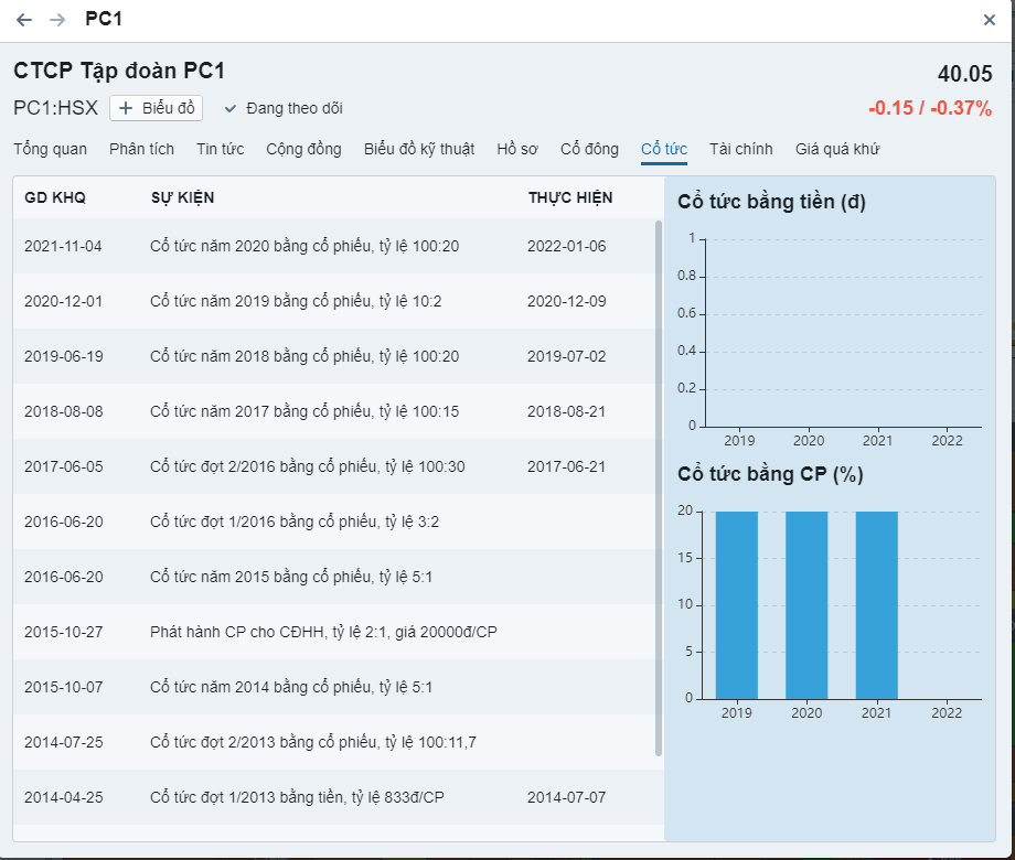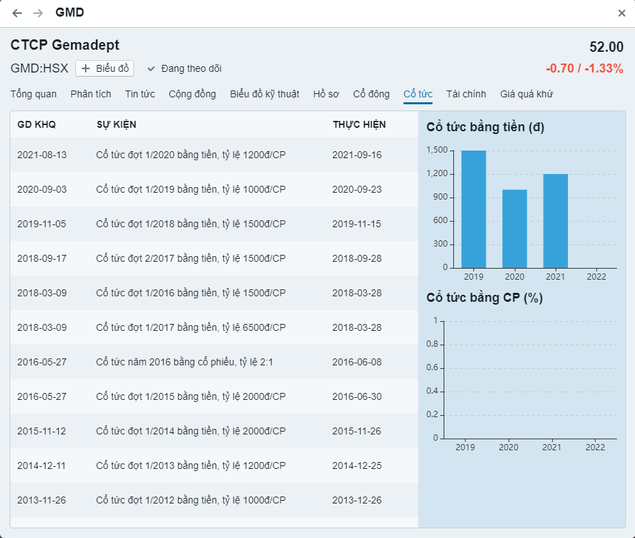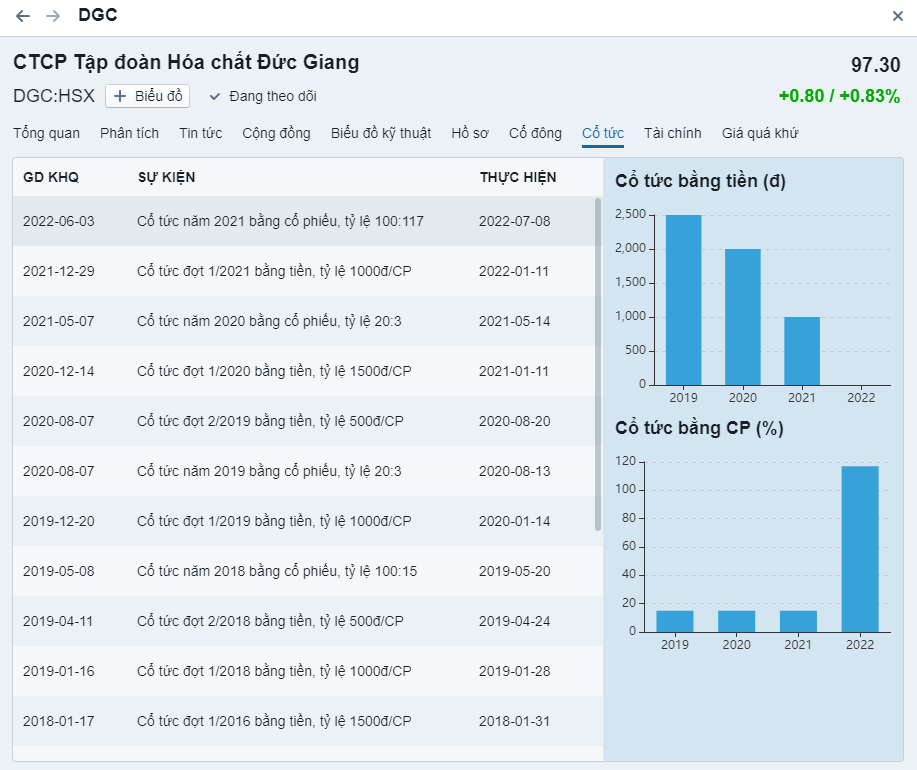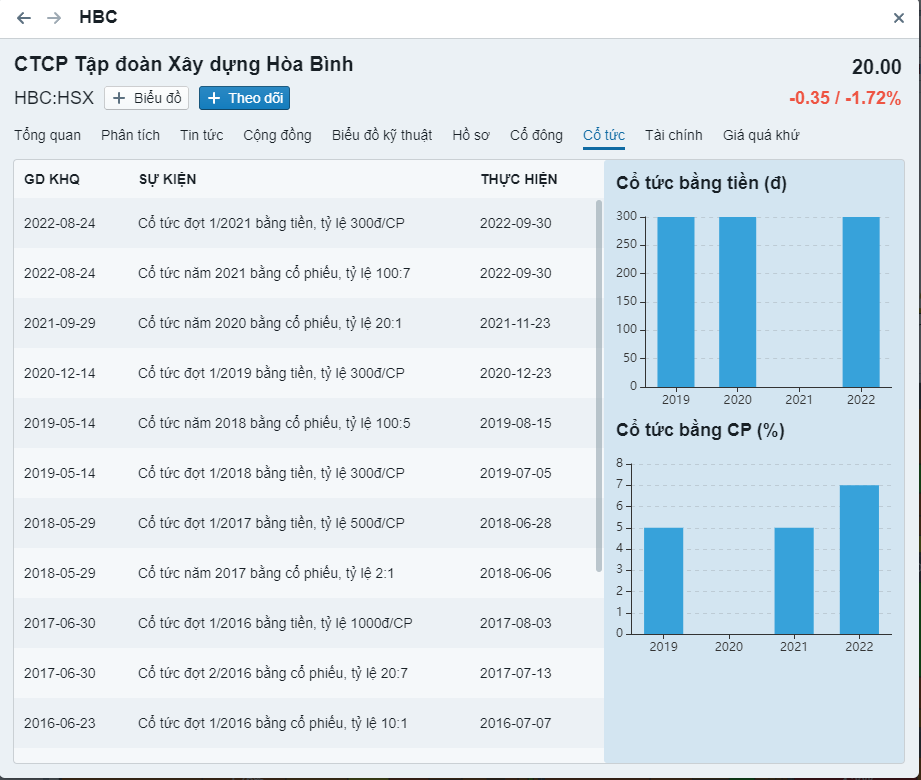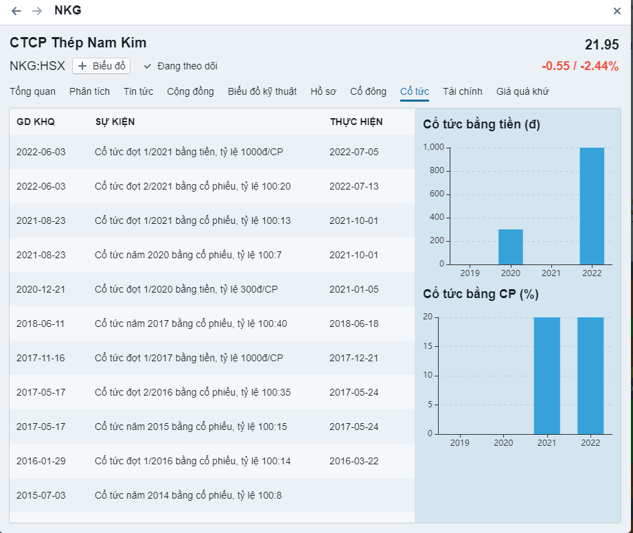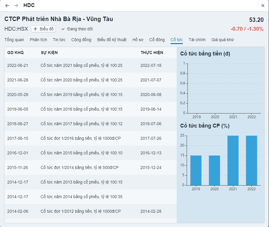 - Cổ phiếu trả cổ tức hàng năm liên tục trong 5 năm gần đây (thấp nhất 10%)