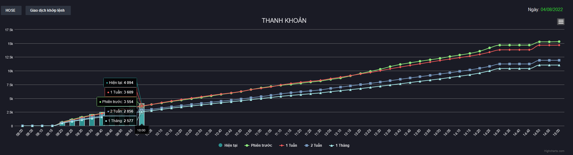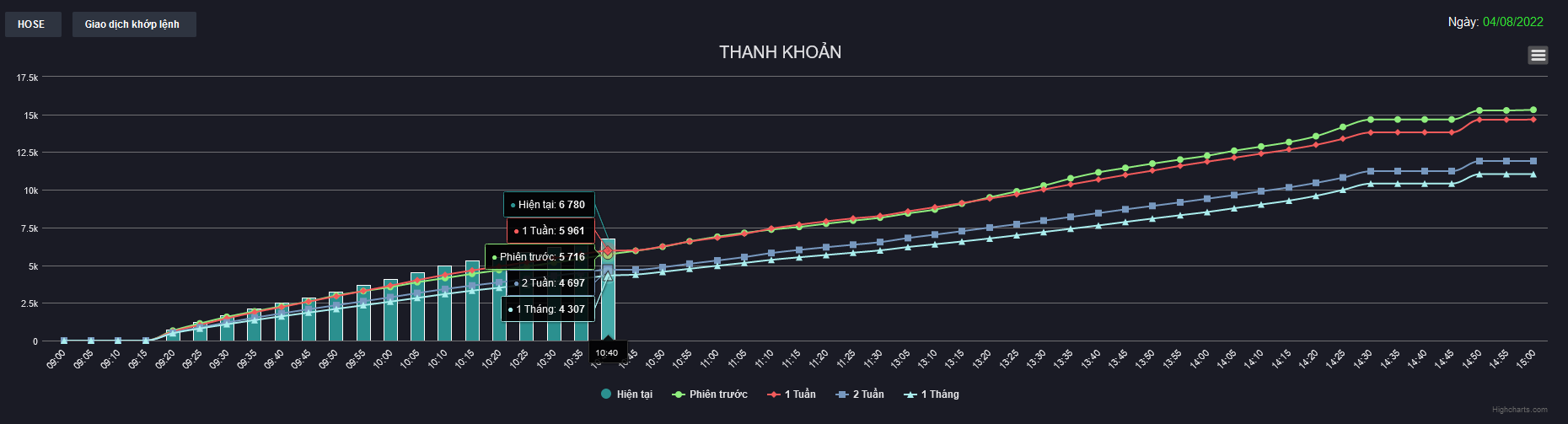 Hôm nay thanh khoản cao hơn hôm qua chắc do nhỏ lẻ chốt lời còn nhà cái tranh thủ gom cho đủ số lượng rồi phi 1 mạch đến 13.xx luôn