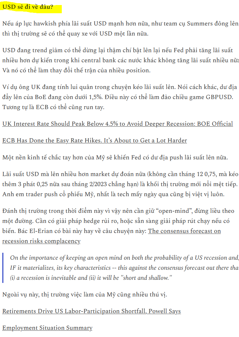 Upside của cổ phiếu còn không (cổ phiếu còn tăng tiếp không ?) thì mình không chắn chắc. Điều đó đòi hỏi doanh nghiệp phải có sự ủng hộ từ nền tảng KQKD sắp tới của doanh nghiệp, đặc biệt là 2 quý gần nhất sắp tới là Quý 4/2022 và Quý 1/2023. Không ai có thể đoán được thị trường, nên chưa chắc việc chốt lời hay mua mới đoạn này, hành động nào sẽ phù hợp hơn. Tuy nhiên, chúng ta nên bắt đầu có những suy tính về những diễn biến sắp tới cho kế hoạch của bản thân.