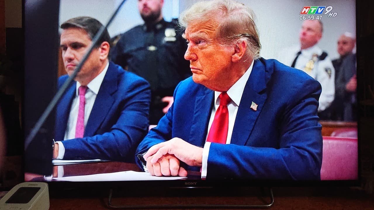 Ảnh : Trump hầu tòa án Mỹ ( lần đầu có một cựu Ttg Mỹ ra tòa hình sự).
