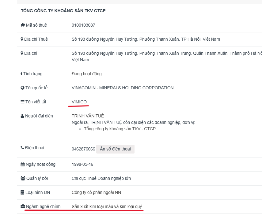 chủ pic liền xem mục kinh doanh của cty này là gì , thì soi được 2 mục