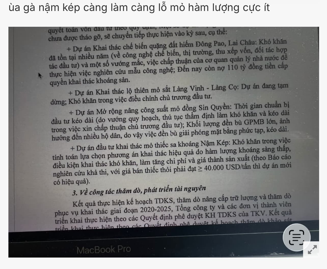 30 triệu tấn quặng thu 2000 tấn tinh chia 15 năm liệu lỗ sấp mặt? Thiếc tăng gấp 3 xem bctc năm nay nhé