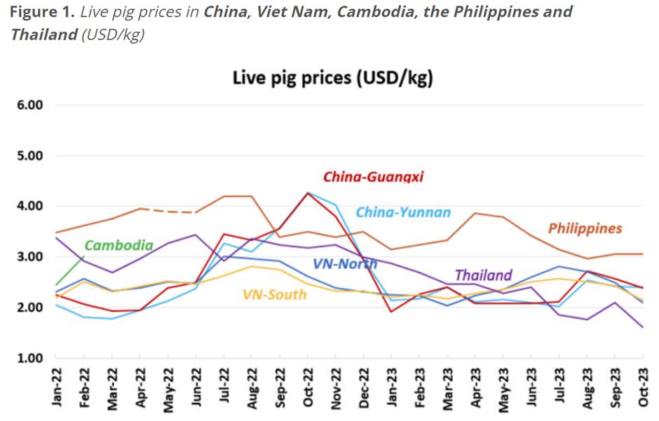 Giá lợn hơi của Việt Nam đang thấp hơn so với Thái Lan, gần tương đồng với Trung Quốc.
