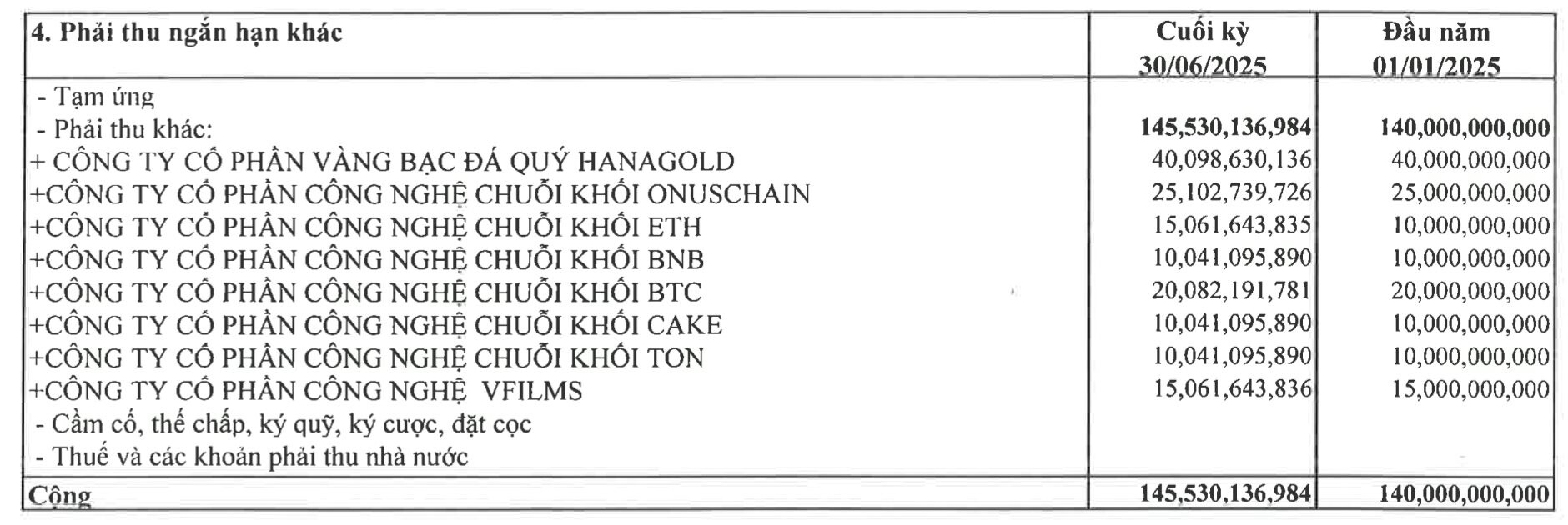 Theo báo cáo tài chính quý 2/2025, tại thời điểm 30/6, HVA có vốn chủ sở hữu gần 151 tỷ đồng, tổng tài sản ở mức hơn 157 tỷ đồng, đều tăng nhẹ so với đầu năm. Các Hợp đồng BCC được ghi nhận trên khoản mục phải thu ngắn hạn khác, không phải trực tiếp do HVA đầu tư.