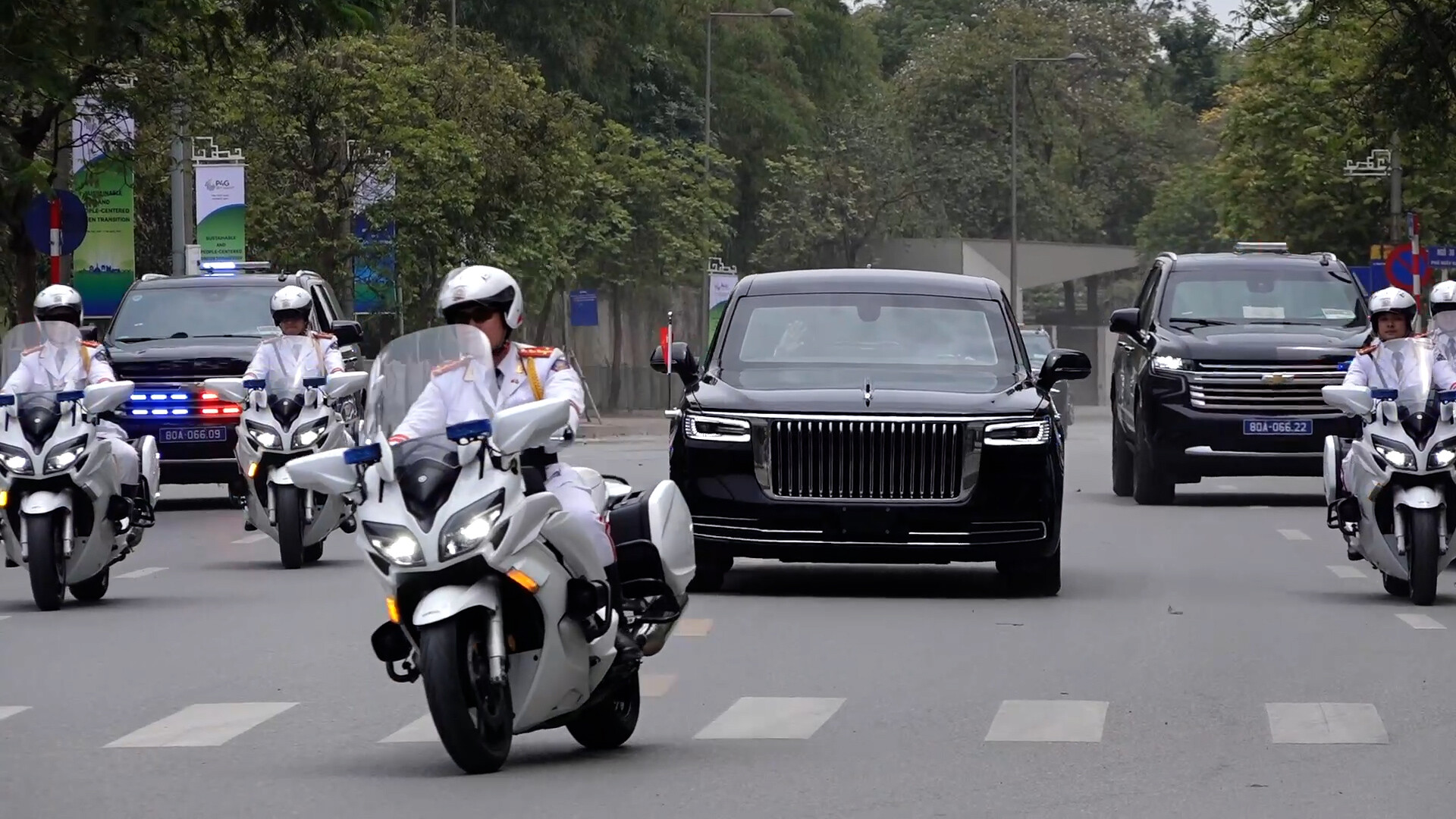 Đoàn xe chở ông Tập Cận Bình về tới khách sạn Marriott ở đường Đỗ Đức Dục, quận Nam Từ Liêm. Video: Lộc Chung